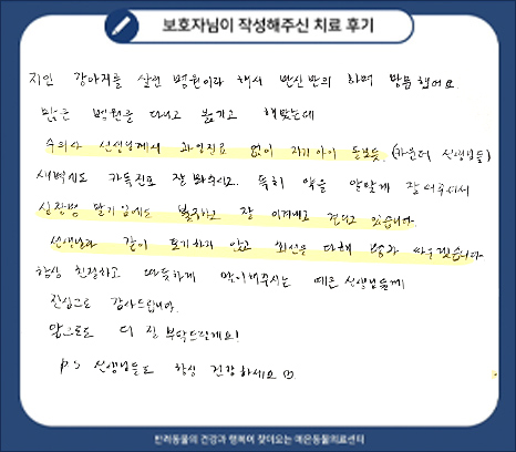 세심한 치료덕분에 건강하게 잘자라고 있습니다. 진짜 너무 감사해요.