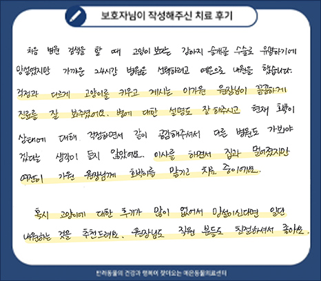 수의사 선생님께서 과잉진료 없이 자기 아이 돌보듯 해주셔서